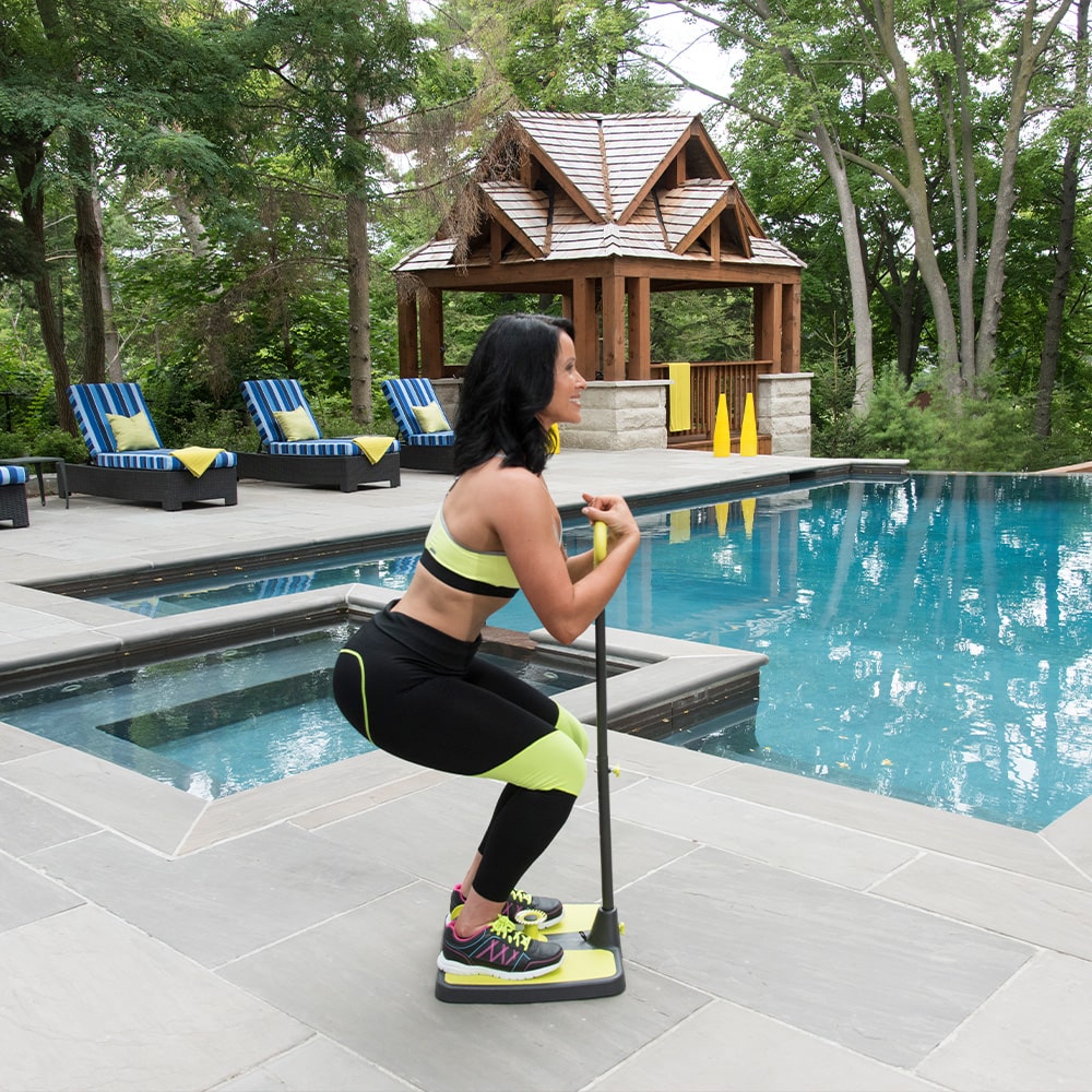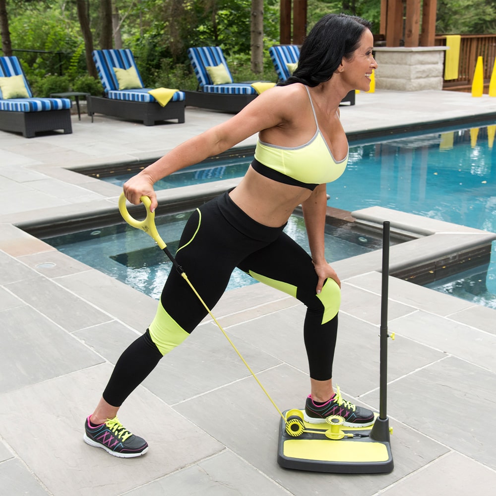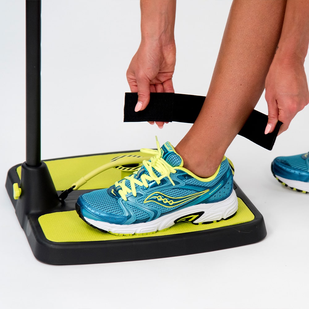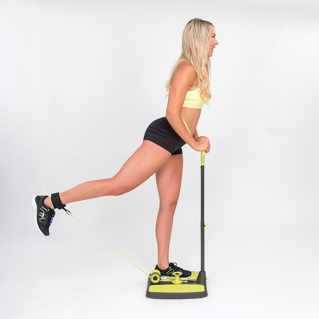 Praktična sprava dizajnirana tako da ne zauzima mnogo prostora. Snažna konstrukcija, podstavljena platforma za vježbanje i premium elastične trake za otpor idealne su za funkcionalnu tjelovježbu. Jednostavno zakačite udobno remenje oko gležnja i krenite zamahivati.