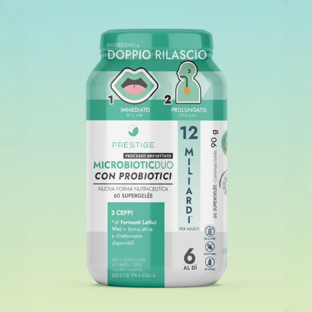 Microbiotic Duo je dodatak prehrani koji sadrži inulin – biljno vlakno poznato po svom povoljnom učinku na probavu – te žive kulture mliječno-kiselinskih bakterija poput Bifidobacterium breve, Bifidobacterium lactis i Lactobacillus plantarum. Zajedno doprinose uravnoteženoj crijevnoj flori i boljoj probavnoj ravnoteži.