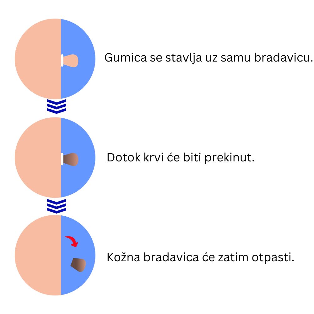 - Gumica će sada biti sigurno postavljena na mjestu gdje će ostati dok bradavica ne otpadne.