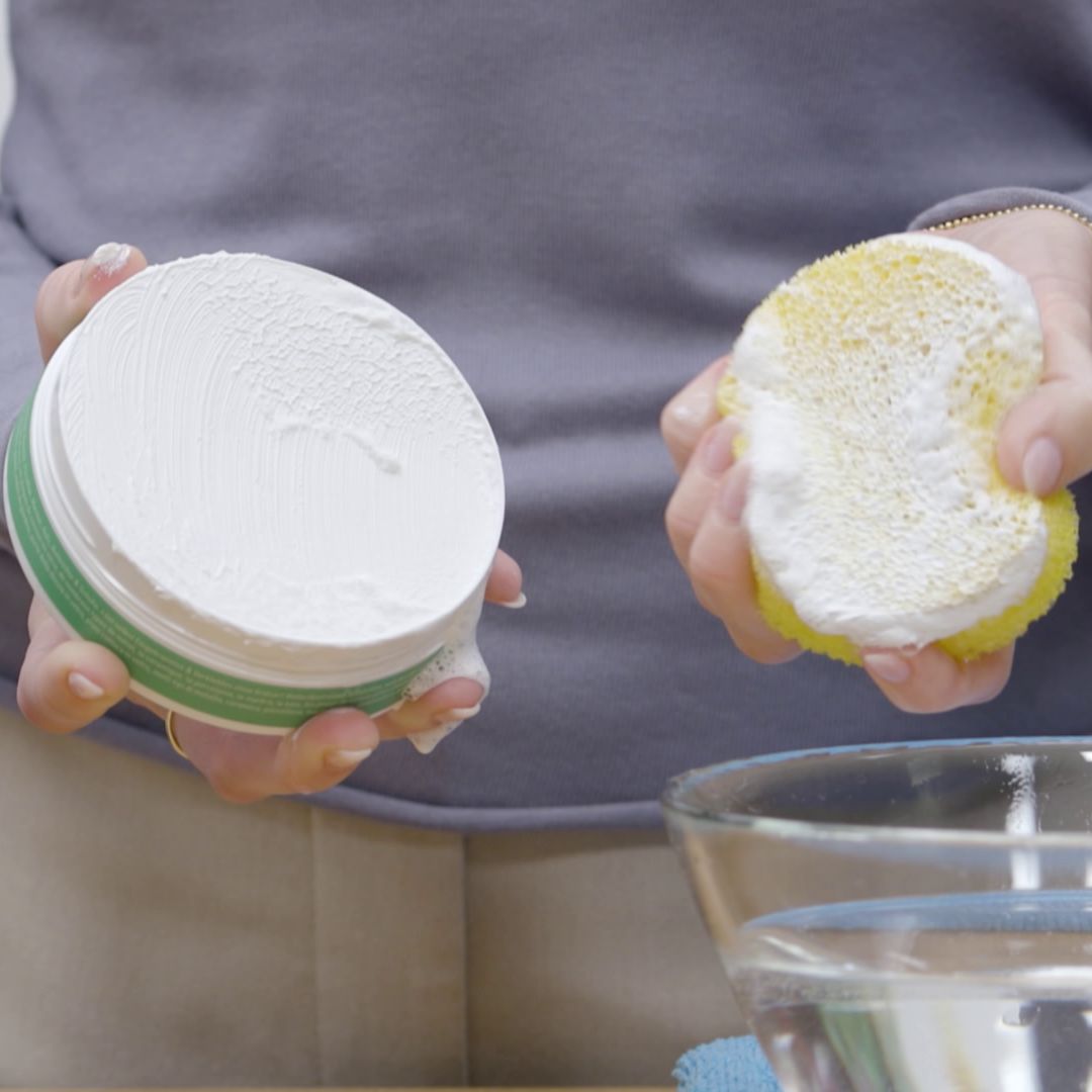 2. Protrljajte spužvicu o čistač u kamenu kako biste stvorili pjenu.