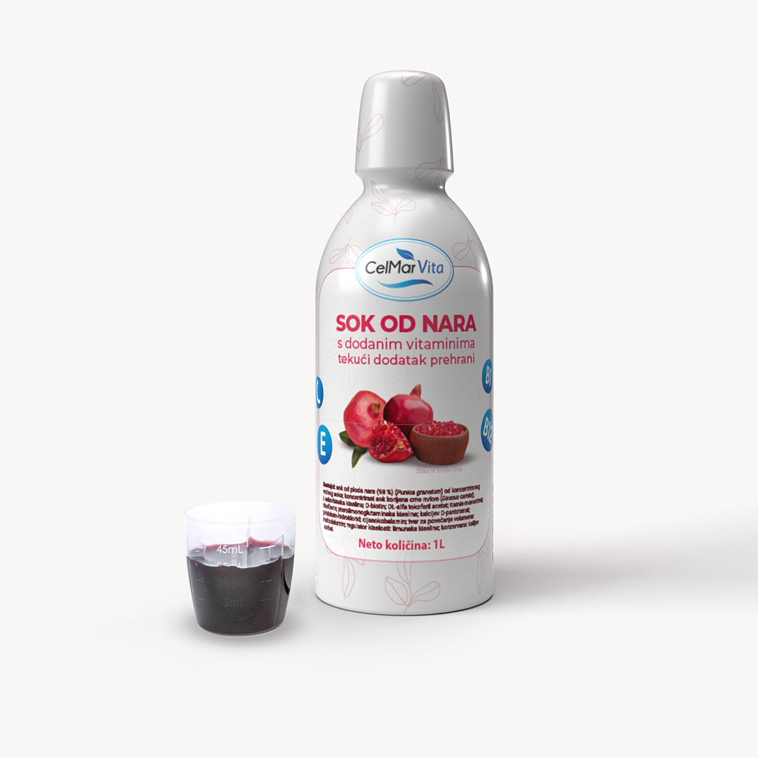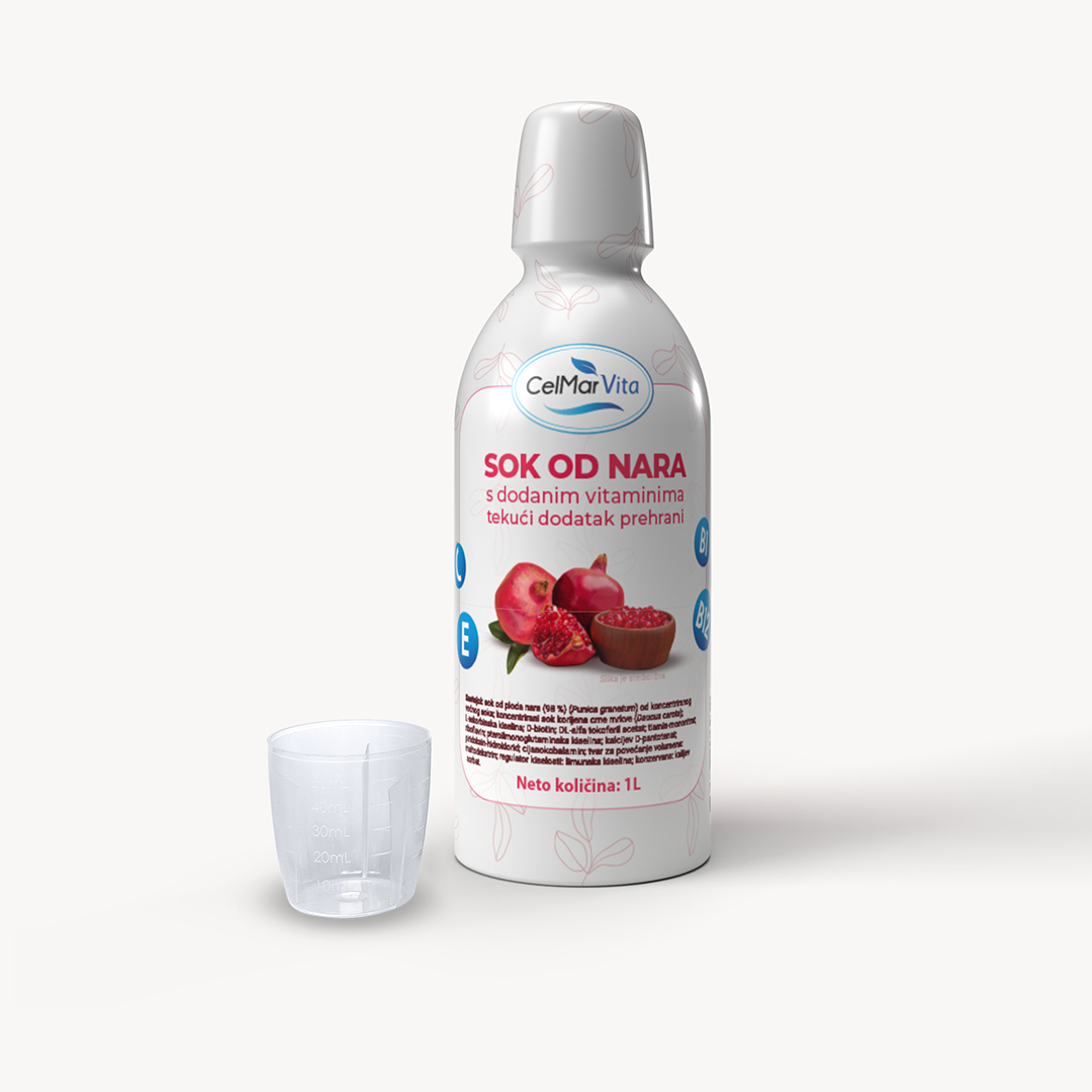 Sok od Nara u tekućem obliku s koncentriranim sokom od nara, bogat vitaminima C, E i B kompleksa. Popijte jednu dozirnu čašicu dnevno za optimalan unos vitamina!
